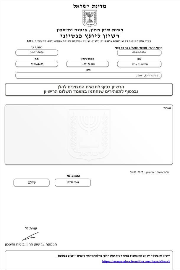 - עבודה כיום גם בייעוץ אישי- אפשרות לתת ייעוץ פנסיוני אישי לכל מי שיבחר בכך!