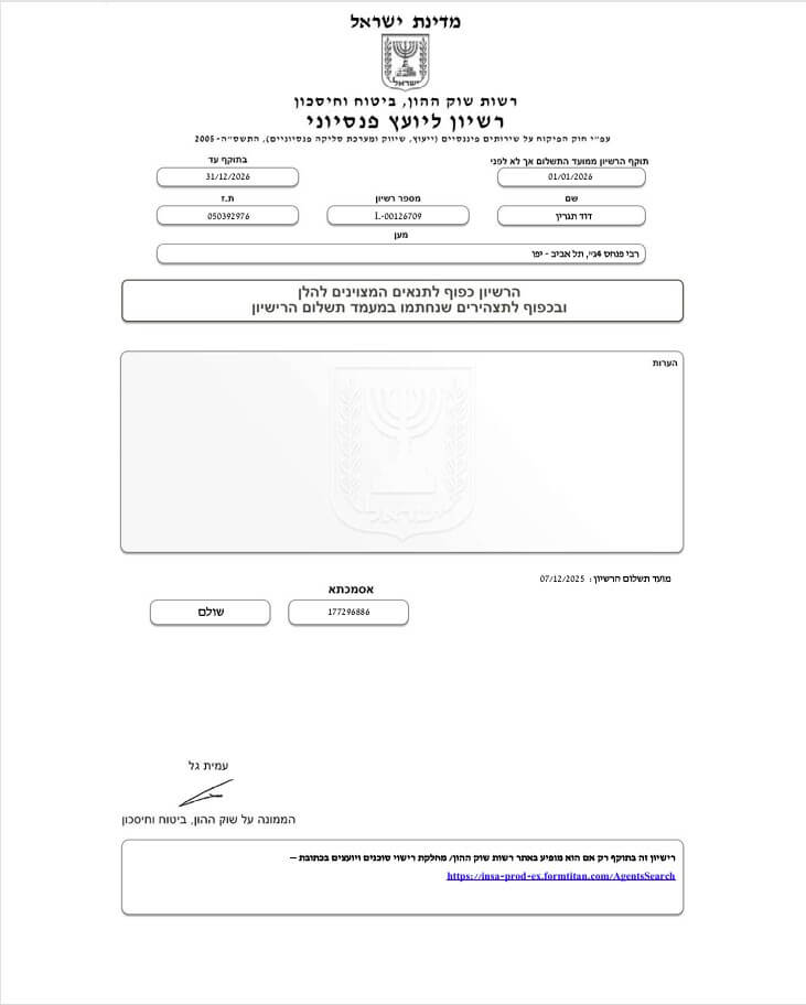 יועץ פנסיוני מומלץ עם תעודות מקצועיות: